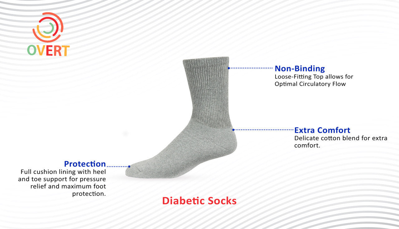 Overt Diabetic Cotton Blend Crew Socks for Optimal Circulatory Flow, Black 3 Pairs - Curative Diagnostics