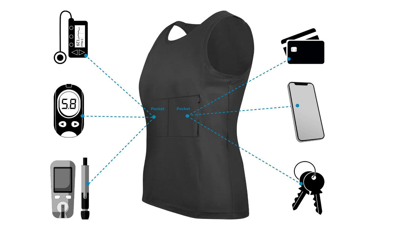 Overt Women's Work-It-Out Active Tank Top with Special Pockets for Insulin Pump Users